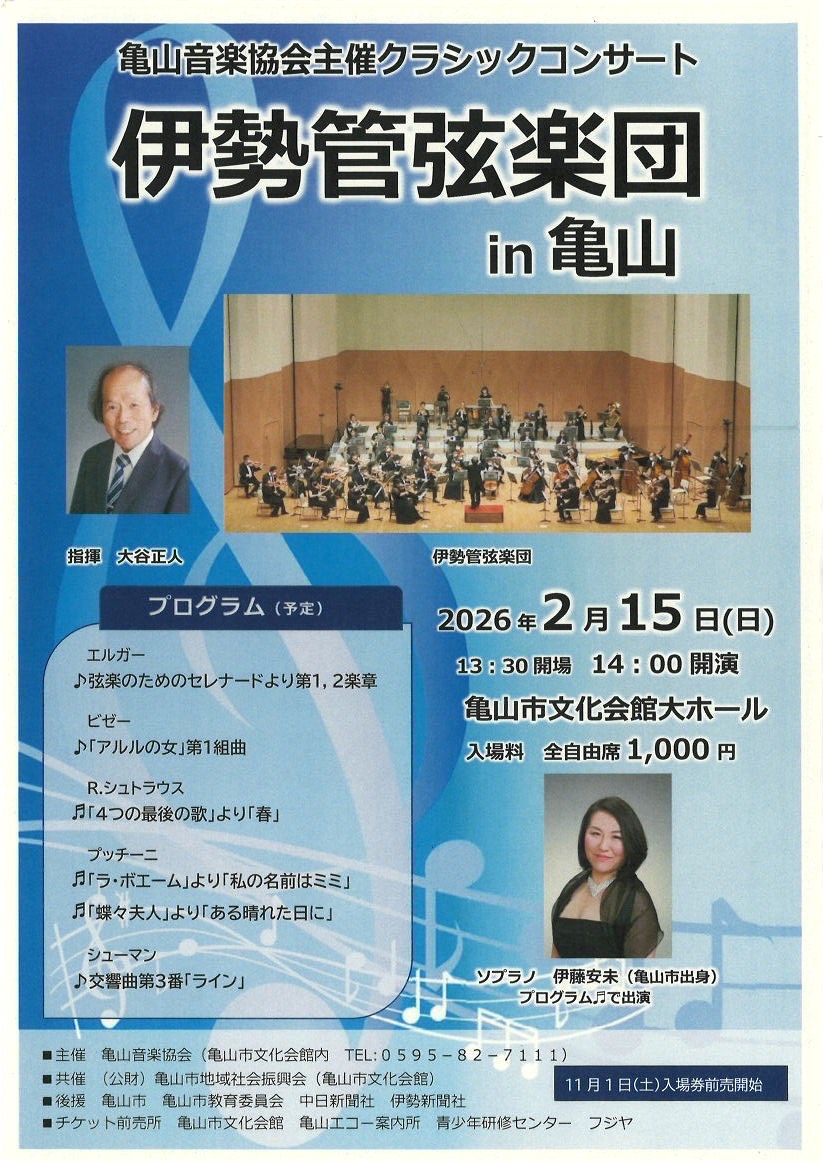 2025年11月01日 18:38亀山音楽協会主催コンサートに出演します。